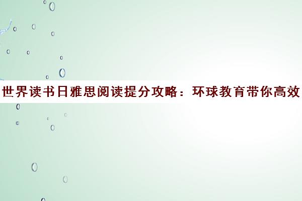 本文解答了关于《世界读书日雅思阅读提分攻略环球教育带你高效备考突破》相关内容,同时关于1、雅思阅读环境类文章,... 2025/12/6 13:58:23 |